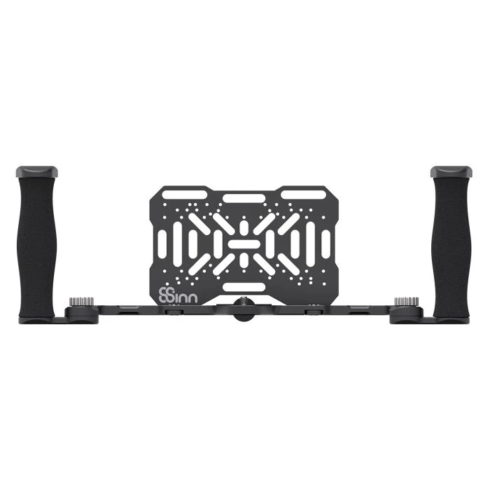 The backplate of the cage has a pattern of mounting points appropriate for V-Mount and Gold Mount Battery Plates which are the most commonly used battery types.