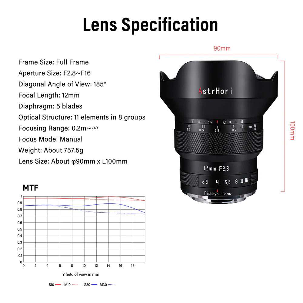 Excellent Lens for Starry Sky – This full-frame fisheye lens has an ultra-wide viewing angle and a large aperture of F2.8, which reduces noise in the night scene and makes the picture more pure and transparent; excellent coma control keeps the star points on the edges round.