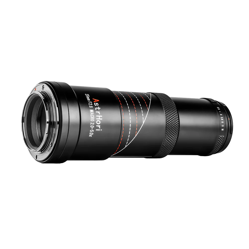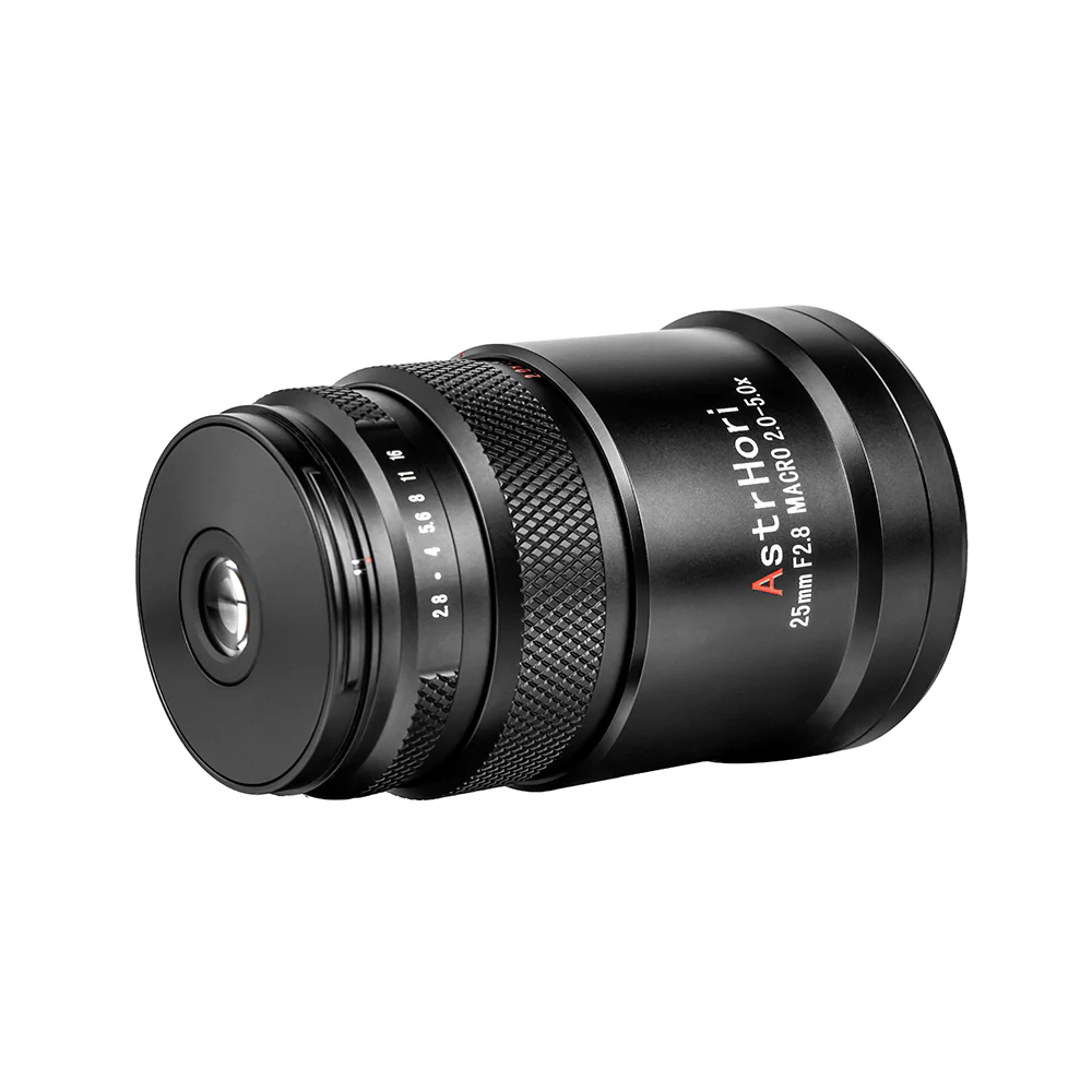 Designed for extreme close-ups, the AstrHori 25mm f/2.8 2-5x Ultra Macro Lens excels at capturing subjects at greater-than-life-size magnifications. With a magnification range of 2:1 to 5:1, it offers a minimum focusing distance of 4.4″ at 2:1 and 7.3″ at 5:1, along with a comfortable working distance of 1.5-1.8″. This specialized prime lens is perfect for detailed macro photography.