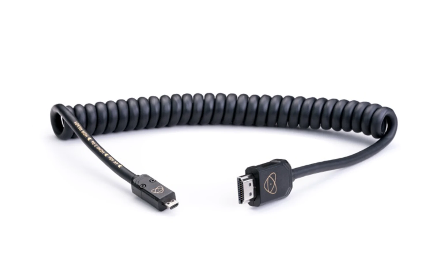 The ATOM4K60C2 is a 40-80cm HDMI (Type-A) Male to Micro-HDMI (Type-D) Male Coiled Cable that supports 4K video at up to 60 fps and HD video at up to 240 fps via the HDMI 2.0 signals between devices and components.