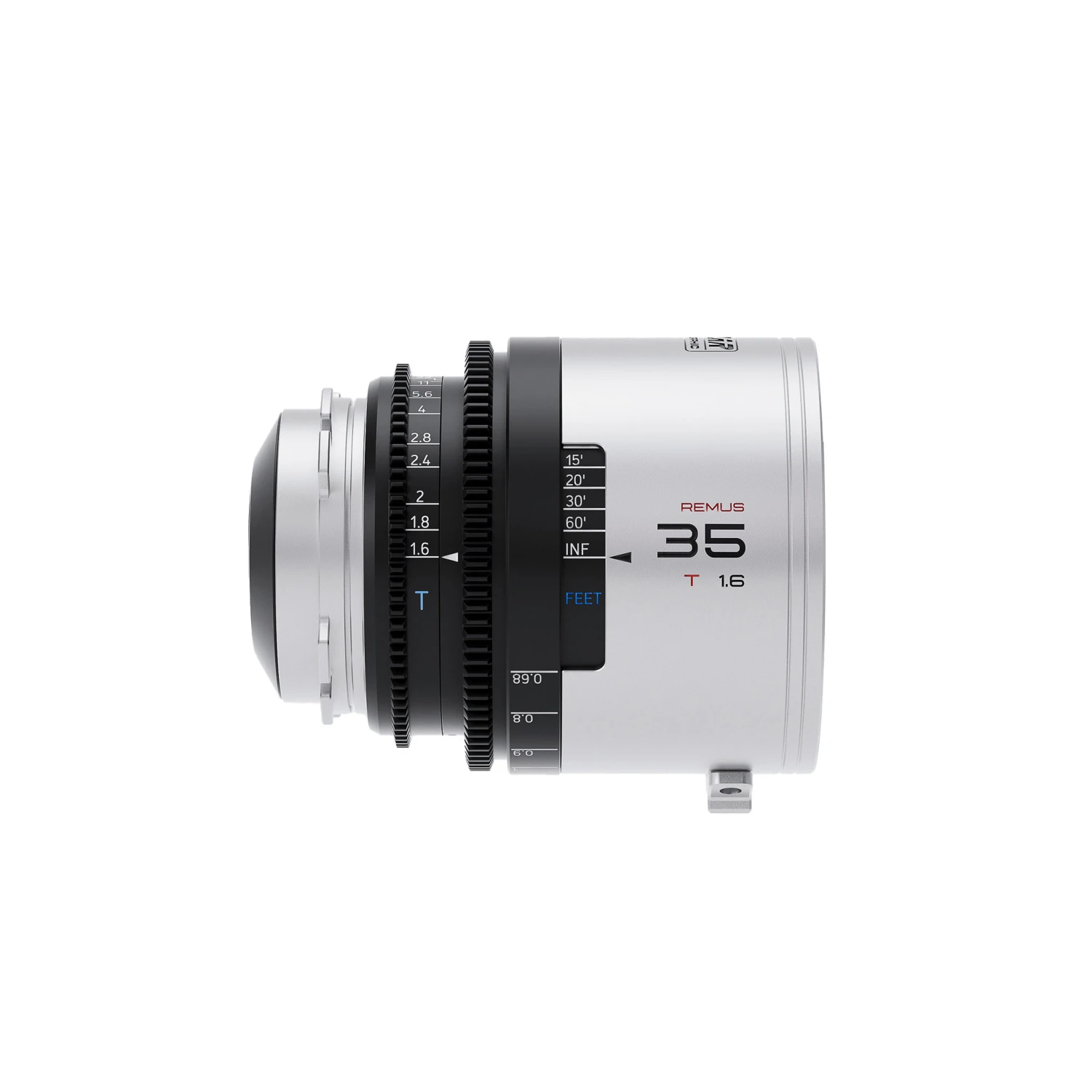 The Remus 35mm 1.5x series has a constant 1.5x squeeze factor and supports S35 shooting. The lens covers a 25x17mm image circle and has a T1.6 aperture stop.