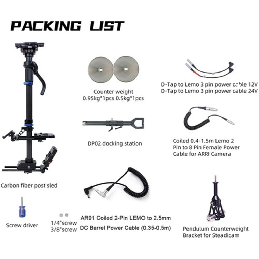 You can adjust the post height from 2.2 to 3.6 feet and use the included 1.1 and 2.1 lb counterweights to manage heavier loads. Pass-through power and 3G-SDI connections enable you to power your camera and accessories while transmitting video signals to a secondary monitor. Additional power can be supplied through the V-mount battery plates or the 16V and 24V D-Tap output ports. For supporting larger loads, the sled can be attached to the separately available dual arm and support vest.