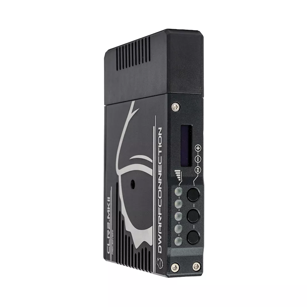 To find the optimal channel, the CLR2 MKII has a frequency scanner and an antenna function monitor, the DC-SCAN, which can be output via the HDMI port on the receiver. The wireless transmission of video signals and the frequency monitor can be used alternately. Like all non-DFS systems of the DC-LINK family, the CLR2 MKII is compatible to all WHDI predecessor systems as well as to all other, larger systems and can be extended with further DwarfConnection receivers as desired. All receivers of the MKII series have different frequency sets to receive video signals from other manufacturers with non-DFS WHDI. Thus, all new DC Link receivers can be added to an existing WHDI system from other manufacturers.