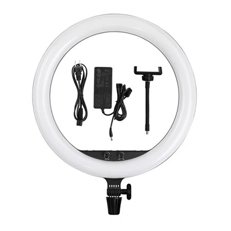The Godox LR150 LED Ring Light has an adjustable color temperature that is adjustable from 3000 to 6000K, so you can easily adapt the light to other fixtures, ambient light or just for a creative effect. The ring lamp has a diameter of 18 inches.