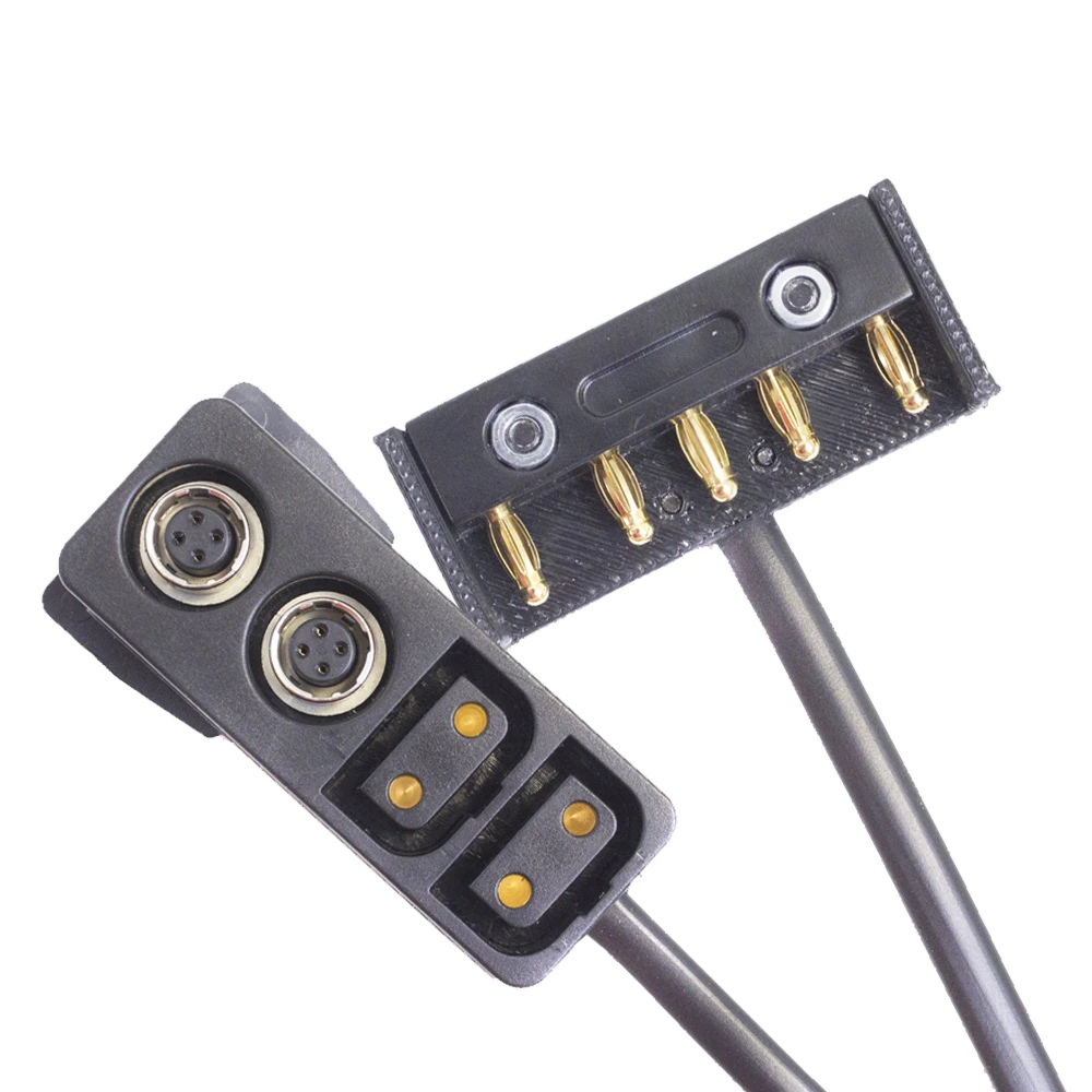 V-Lok contact block adaptor running to 2x power-con and 2x hirose outputs, which will be nominal voltage from the V-Lok battery.