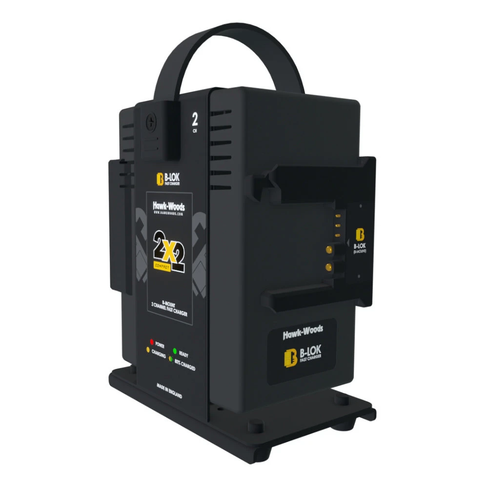 The BL-2X2 is a 2-Channel simultaneous charger for B-Lok (B-Mount) batteries. This 2.5Ah charger will charge up 2 of these high speed camera batteries within four hours.