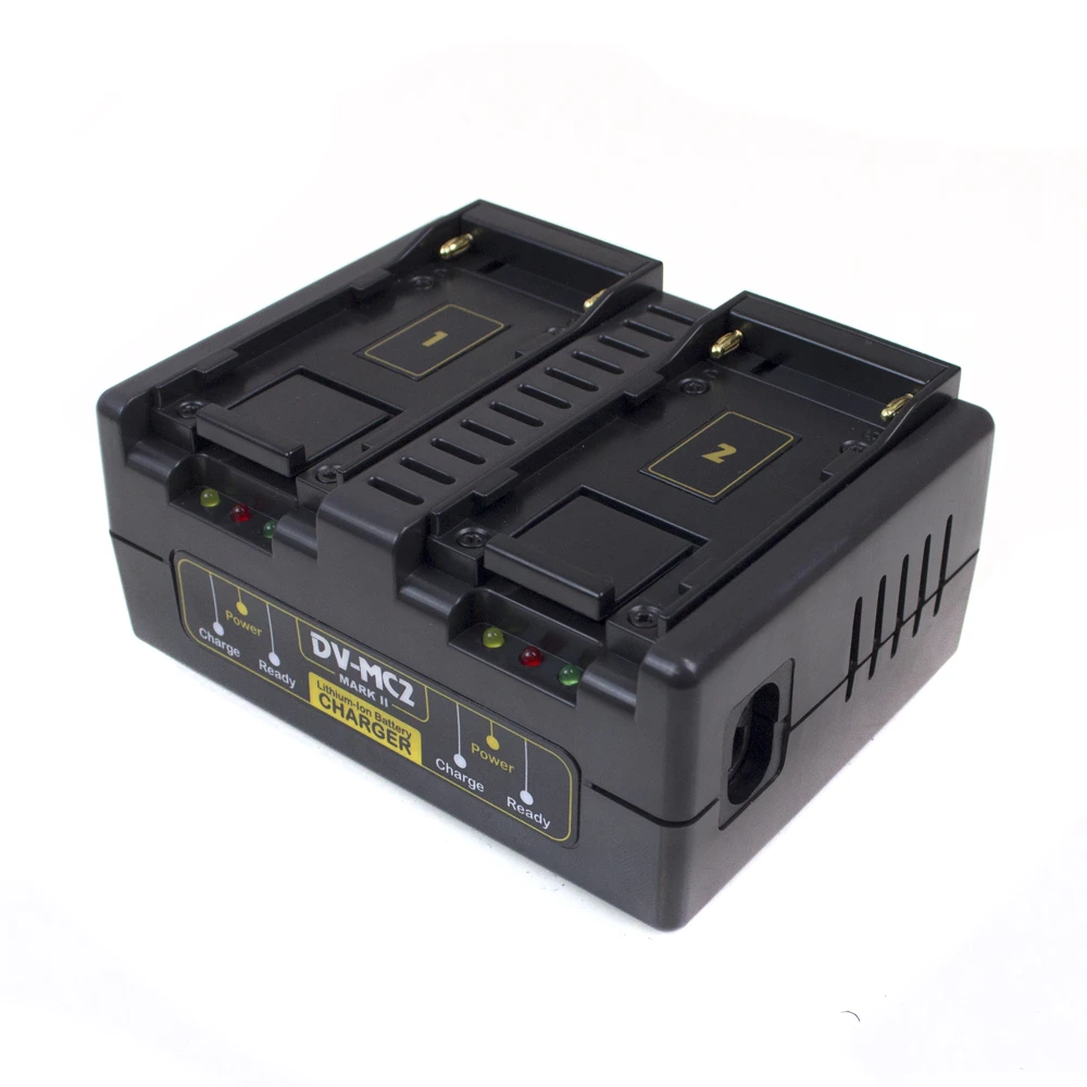 The DV-MC2 is a 2-Channel simultaneous fast charger that will charge two Mini DV batteries simultaneously. It has been designed for use with our range of MDV range, However is also 100% compatible with the Sony NP-F series.