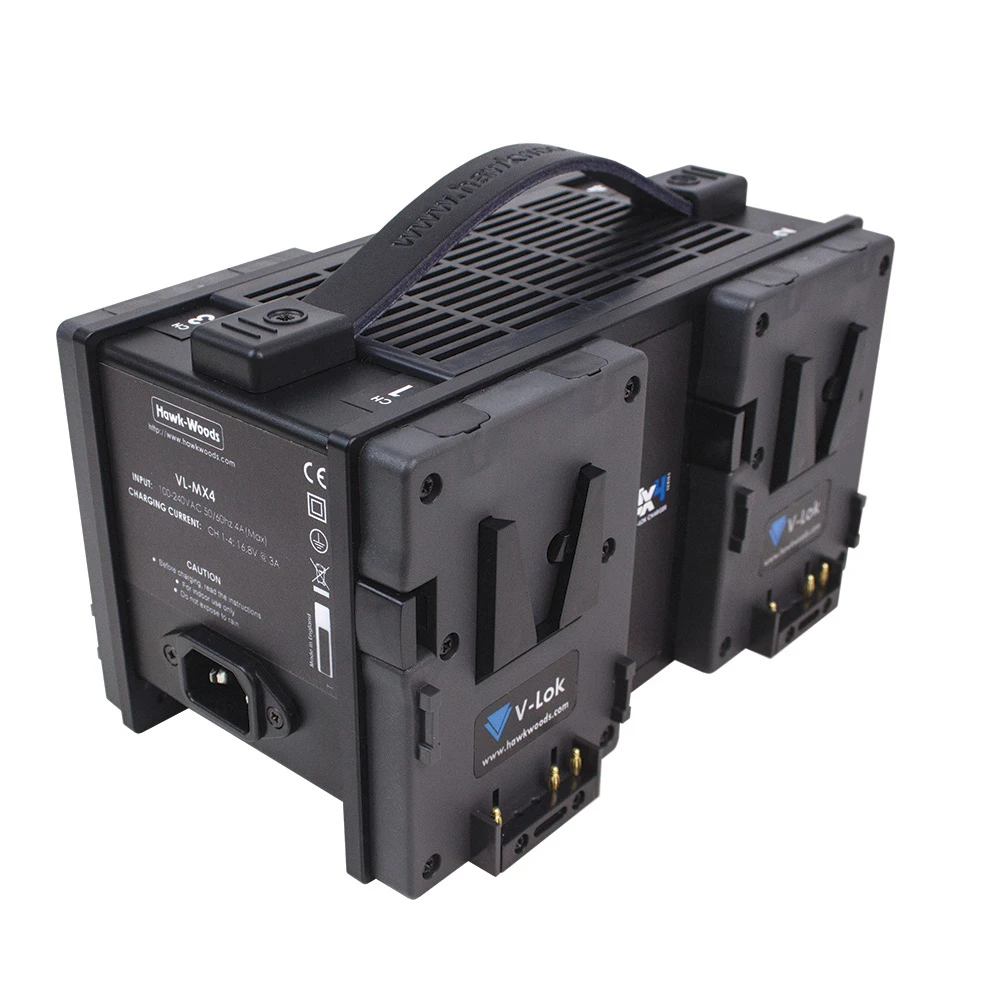 Our latest 4-channel V-Lok simultaneous charger offers a more sleek and compact look than our previous simultaneous model, we have stepped charging current down from 4A to 3A this is to suit MINI-VL as well as standard V-Mount batteries.