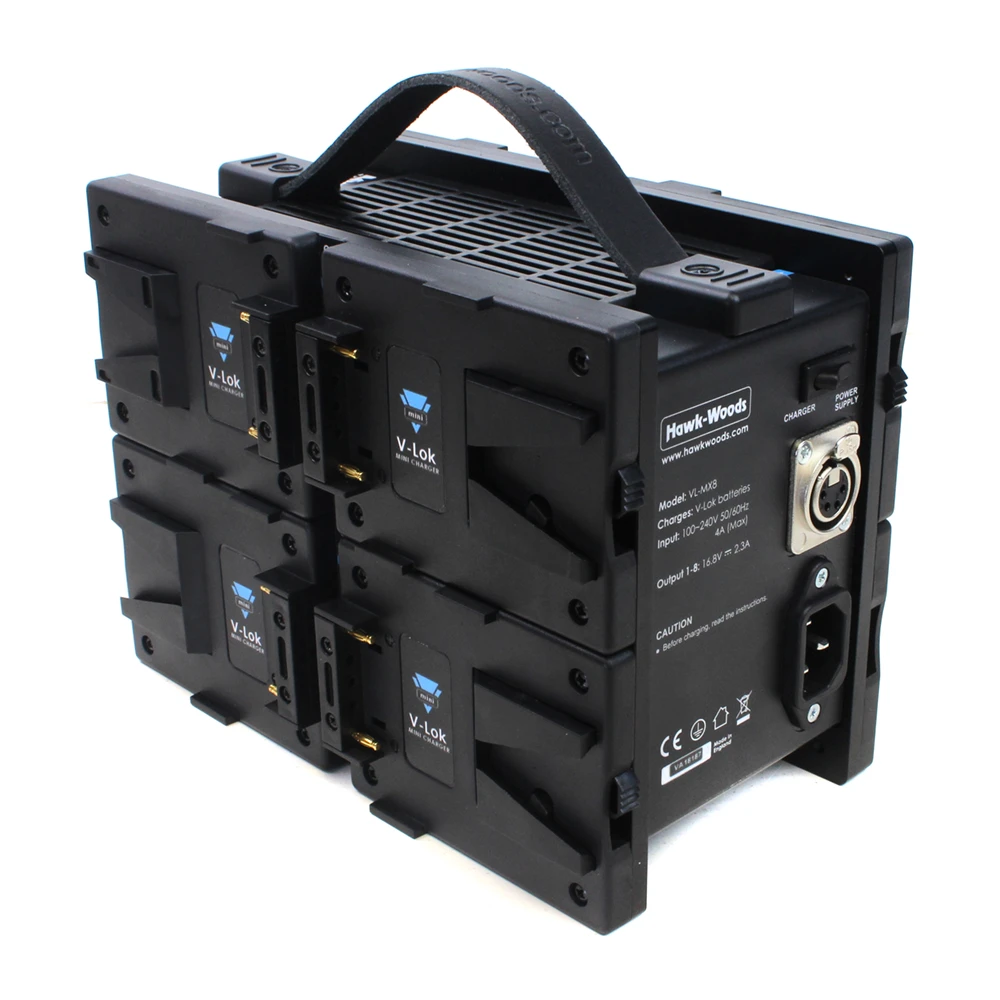 Our latest 8-channel V-Lok semi-sequential charger simultaneously charges four batteries at any one time, which then moves onto the other four channels. Given the chargers capability of charging 8x batteries the MX8 is still relatively small and compact compared to other chargers on the market which are of a similar size and only four channels.