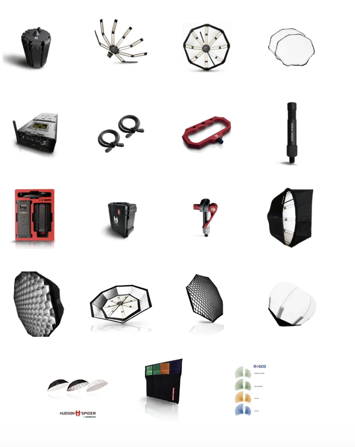 - 1 x 7’ HUDSON SPIDER + WESTCOTT Diffusion Shoot Through umbrella.