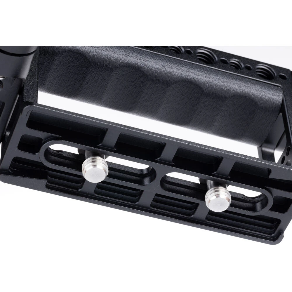 The Mid49 Rainbow Handle Kit is a versatile, modular handle system that can be configured in various ways, including the classic Hollywood or Panavision-style handle, which bends behind the battery. Each component is compatible with any 3/8″-16 ARRI accessory mount, and the anti-twist pins ensure the handle components are securely locked with no play. The system features 1/4″-20 and 3/8″-16 threaded holes with anti-twist divots, as well as multiple M4 x 20mm threaded holes. The rubberized grip can be easily popped out and replaced with another color for customized color coding. The main handle section includes an Arca-Swiss dovetail shape, allowing compatibility with any MID49 Top Plate or Upper Cage, as well as many third-party Arca clamps.