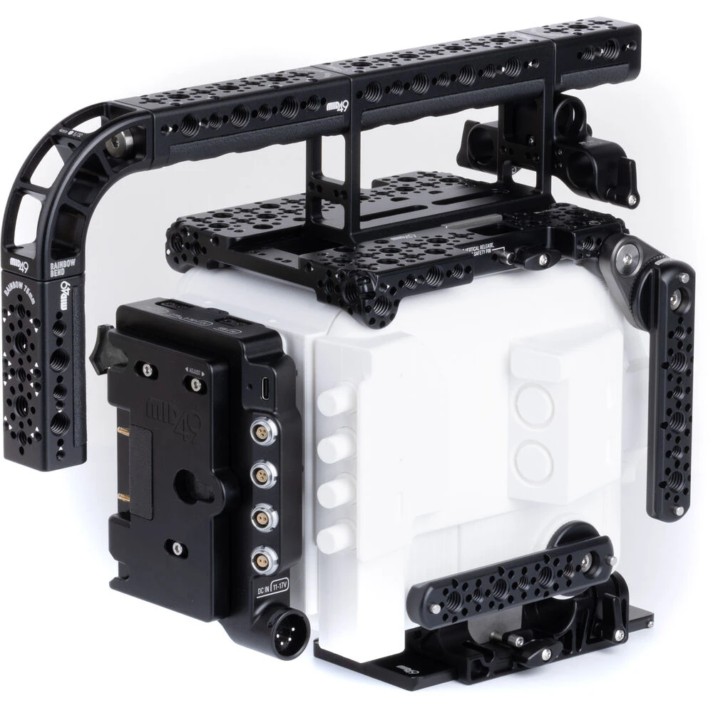 The Mid49 Rainbow Handle Kit is a versatile, modular handle system that can be configured in various ways, including the classic Hollywood or Panavision-style handle, which bends behind the battery. Each component is compatible with any 3/8″-16 ARRI accessory mount, and the anti-twist pins ensure the handle components are securely locked with no play. The system features 1/4″-20 and 3/8″-16 threaded holes with anti-twist divots, as well as multiple M4 x 20mm threaded holes. The rubberized grip can be easily popped out and replaced with another color for customized color coding. The main handle section includes an Arca-Swiss dovetail shape, allowing compatibility with any MID49 Top Plate or Upper Cage, as well as many third-party Arca clamps.