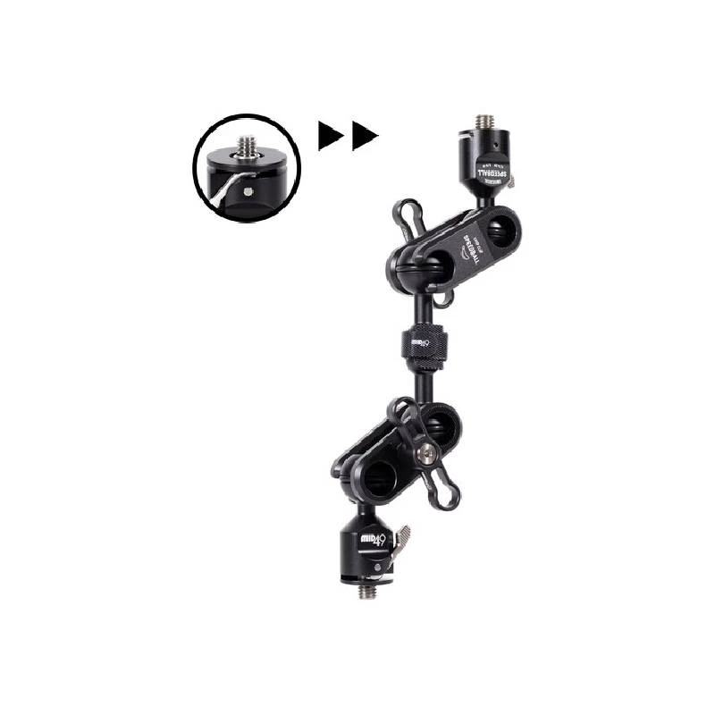 Universal Speedball Monitor Arm (6 Inch) is an articulating arm with combination 1/4-20 and 3/8-16 mounting screws on each end, two double-ball clamps, and one 6 inch (150mm) extension with velcro cable wrap.