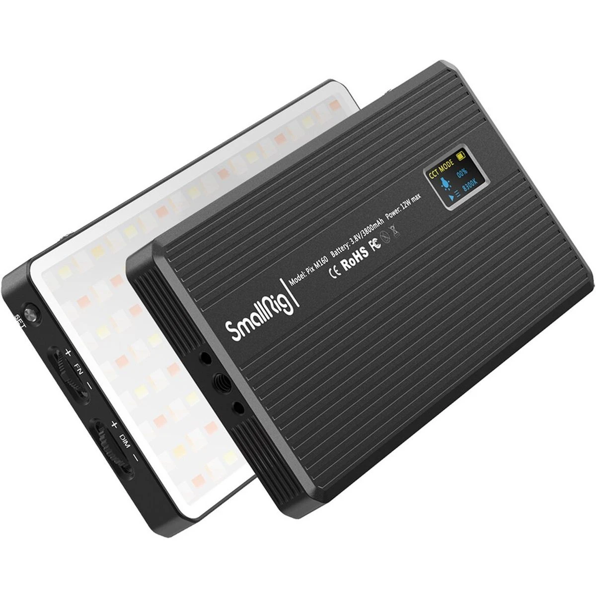 SmallRig Pix M160 RGBWW LED Light is solid, portable and multifunctional, with 0-100% brightness control, CRI95, TLCI98, color temperature scale from 2500K to 8500K, 360° of hue, 100 levels of saturation adjustment and twelve lighting effects. It is integrated with an OLED display to control parameters through dials, knobs and buttons. It comes with a built-in 3800mAh lithium battery, which is charged via an attached USB Type-C charging cable, and serves as a power bank charging the phone through a built-in USB port when powered off. The light can be fixed magnetically or mounted directly onto a camera or a cage with the ballhead 761 and a built-in 1/4″ -20 anti-twist hole. You can also create various atmospheres with the help of the included honeycomb grid and light diffuser.