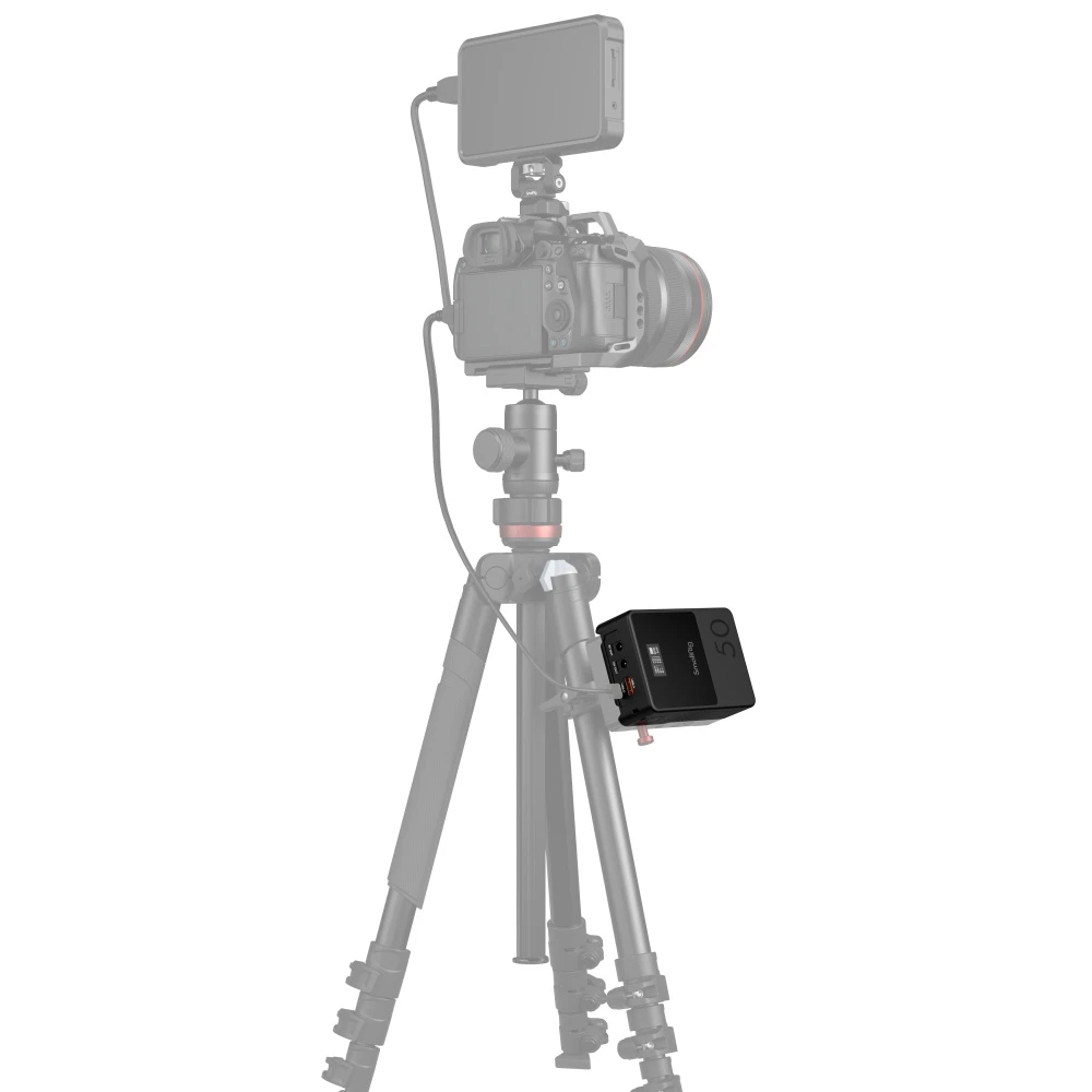 The VB50 Mini V Mount Battery is a compact, lightweight power solution, offering 70% of the size of a standard V-mount battery. Its integrated design maximizes space utilization, making it highly portable. The battery is equipped with a sophisticated BMS chip that supports various fast charging protocols such as PD, QC, SCP, PPS, and APPLE-2.4A. Additionally, it features bi-directional 45W (Max) USB-C PD fast charging, along with adaptive voltage boost and adaptive current regulation.