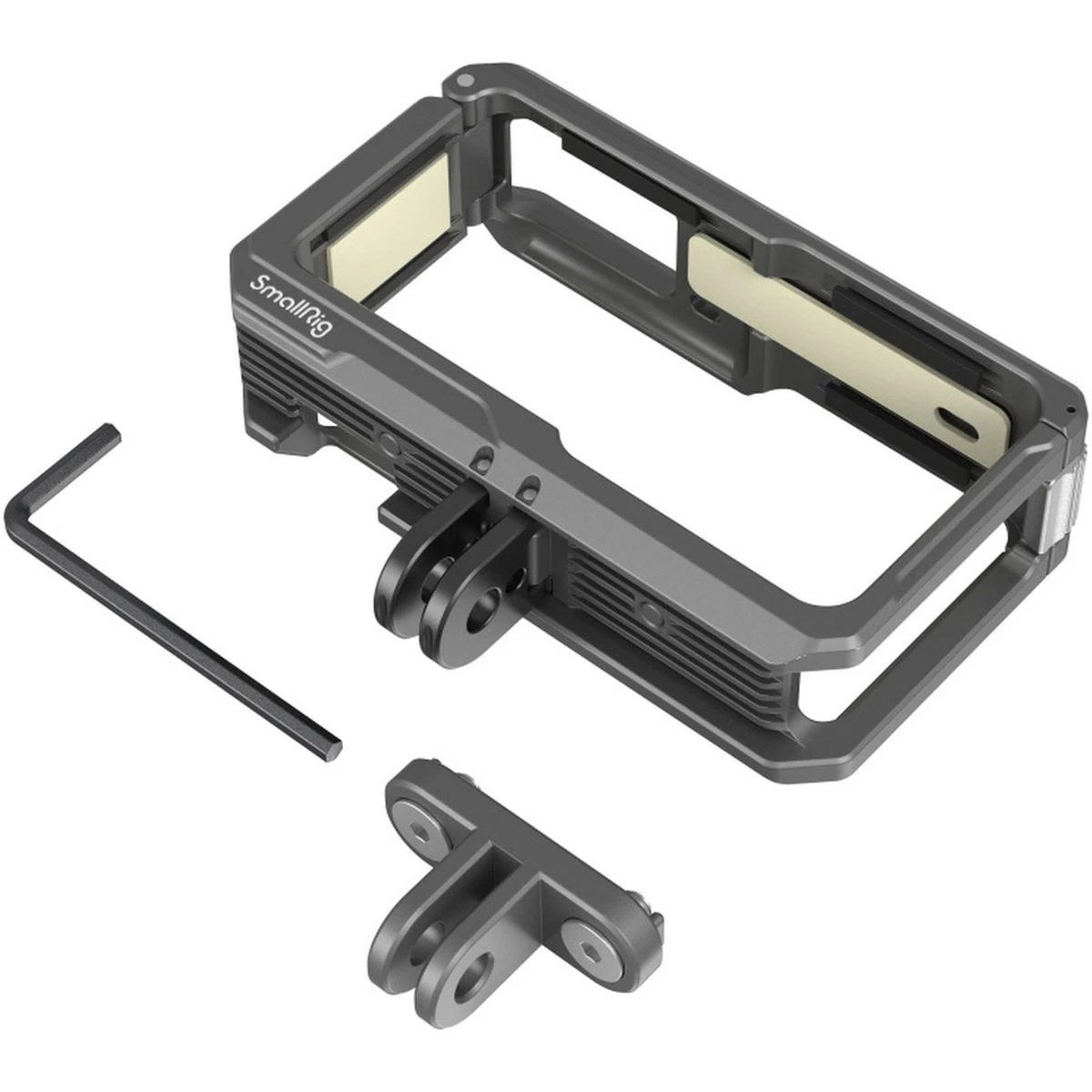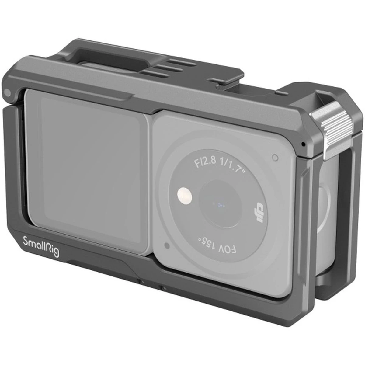 SmallRig Camera Cage for DJI Action 2 3661 is designed for camera protection, quick heat dissipation and accessory attachment. The form-fitting cage secures/releases camera via a push lock and does not block screen, buttons, antenna and filter. It features one cold shoe on the top and the left for microphones, LED lights, etc., two M4 threaded holes on the left and interface mount for action camera accessories. One 1/4”-20 threaded hole at the bottom fits tripod, selfie stick, etc.; heat sink facilitates heat dissipation; and foldable connector for action camera accessory/system. In addition, inside graphene material can quickly transfer heat from Action 2 to the cage.