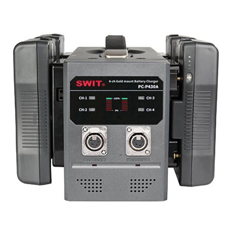 PC-P430A can charge 4pcs Gold Mount camera batteries simultaneously. The charging output is DC16.8V, 3A each channel.