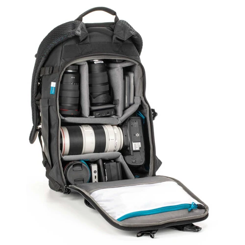Airflow Harness with Dual Sternum Straps – The Airflow harness combines ventilating 3D airmesh and Tenba’s Pivot-Fit™ auto-adjusting straps to ensure a comfortable fit. Unique dual sternum straps significantly improve the load balancing across the chest, with significant benefits for female and male customers alike. Bottom sternum strap can be removed if desired. Rear panel also includes a trolley strap for secure piggyback travel through airports.