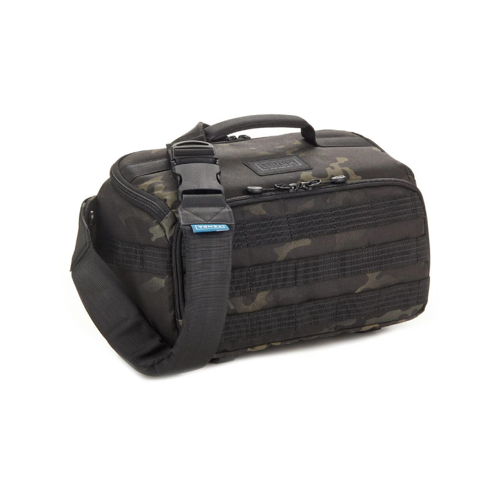 Tenba’s tactical Axis bags were inspired by the ultra-durable bags we’ve made for the military throughout our 40+ year history. The 6L sliing bag will fit a mirrorless or DSLR camera with 2-3 lenses (up to 70-200mm 2.8), or it can fit a DJI Mavic drone kit. The bag can be instantly converted from sling to a waist pack. MOLLE webbing allows expandability with Tenba Tools Battery Pouches and Memory Card Wallets, as well as a multitude of military-standard pouches and accessories. Soft, body-contouring memory foam in the strap ensures all-day carrying comfort. Straps on the bottom will fit a tripod or monopod, and as with other Axis v2 bags, there is a hidden pocket compatible with an Apple AirTag or Tile Bluetooth Tracker.