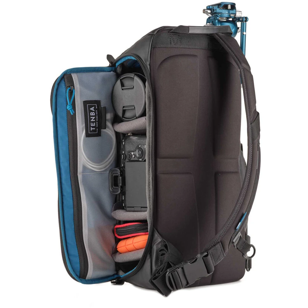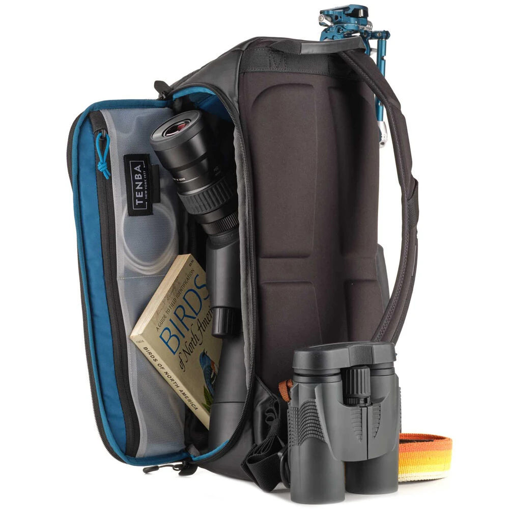 Camera/Tablet Capacity – Mirrorless or DSLR camera with 4-6 lenses, including a camera/lens combo up to 17 inches (43 cm) in length, plus a tablet up to 8 inches (iPad Mini). Also fits DJI Mavic and other compact drones. Fits lenses such as Sony 200-600mm, Canon 200-400mm/200-800mm, Nikon 180-600mm, Tamron/Sigma 150-600mm.