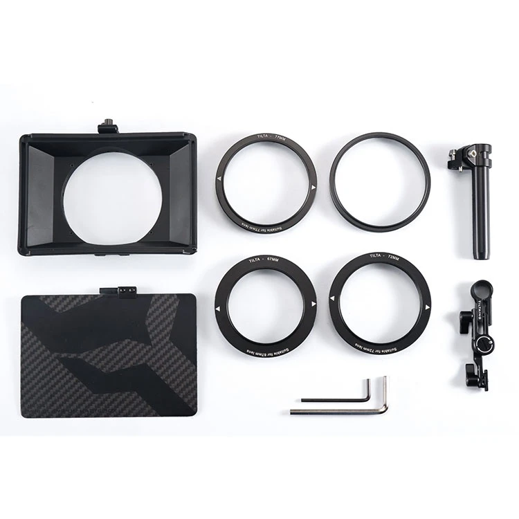 The Tiltaing Mini Matte Box is the perfect matte box for use with Tiltaing camera rigs. It is a super light-weight yet durable design that can accomodate screw-on or 4″x5.65″ filters. Pair it with the FF-T06 Mini Follow Focus and a Tiltaing camera cage.