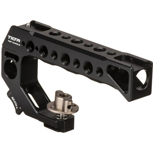 This Tilta Quick Release Top Handle, in black, is a durable, sculpted top handle that attaches securely to a cold shoe and provides accessory mounting points, in addition to a top handle grip for your camera. The quick release handle’s features include two cold shoe mounts, one in the front with a spring-loaded safety latch and the second on the back. The handle also features a 15mm rod port and multiple 1/4″-20 and 3/8″-16 threads with and without anti-twist divots.