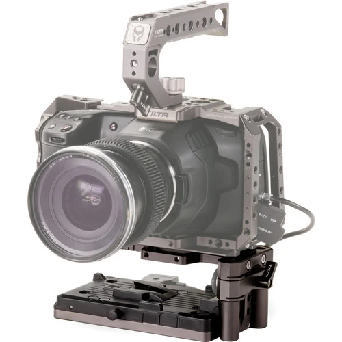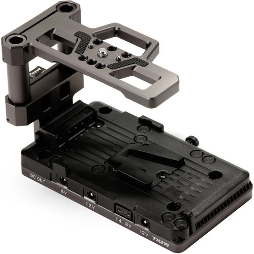 Power your camera and accessories with this V-mount Tiltaing Battery Baseplate v2 from Tilta in a gray color. Mount the baseplate on the bottom of a Tilta half or full cage to power your camera and accessories using a separately available V-mount battery.
