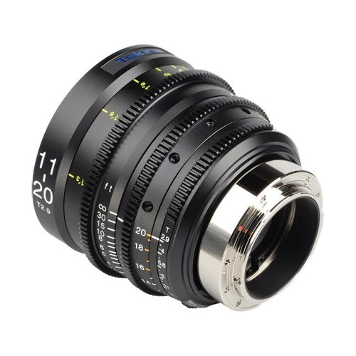 Interchangeable LPL, PL, Sony E, MFT, and Nikon F lens mounts are available separately for swapping with the EF mount, expanding the lens’s compatibility with additional cameras. The Tokina Cinema ATX 11-20mm incorporates low-distortion glass, and its 9-bladed iris produces attractive bokeh in out-of-focus areas. Focus, iris, and zoom settings are marked on both sides of the lens barrel.