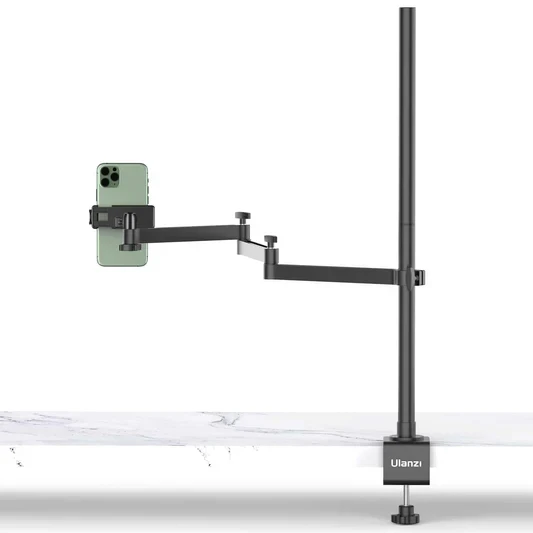 Turn your desk into a professional studio with this Ulanzi desk stand with table clamp. By using a table clamp instead of a tripod, you can free up space on your desk . The stand comes with an adjustable arm and is also suitable for a phone holder, video light or other accessory. Ideal for Youtube videos, streaming, tutorials or other videos.