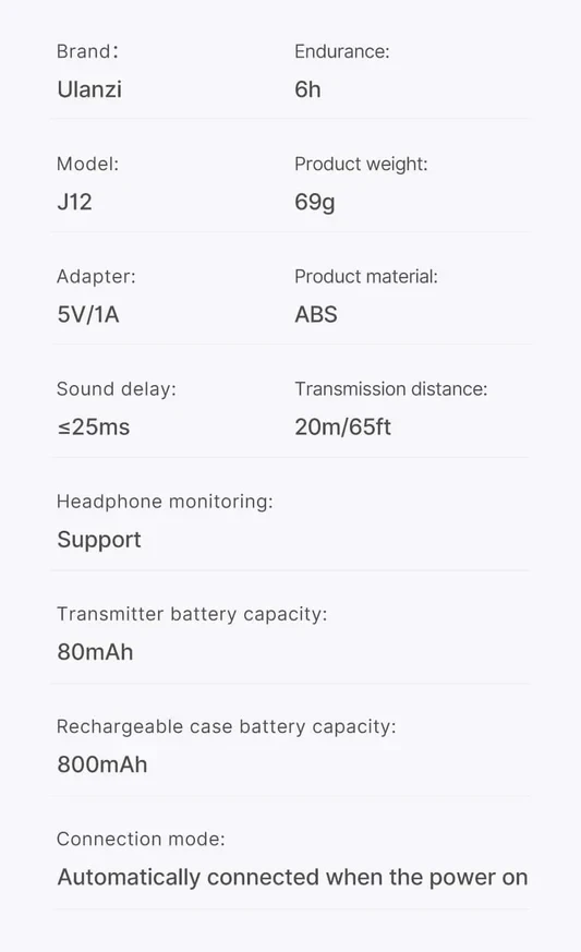 You don’t have to be a sound engineer to work with the Ulanzi J12. The transmitters and receiver turn on at the touch of a button, after which you can record sound.