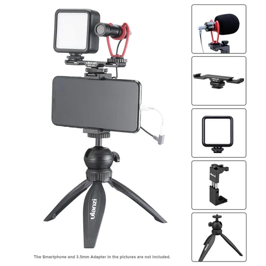 - Suitable for smartphones (tripod, dual cold shoe-mount, light and microphone are also suitable for compact cameras, DSLR cameras, video cameras)