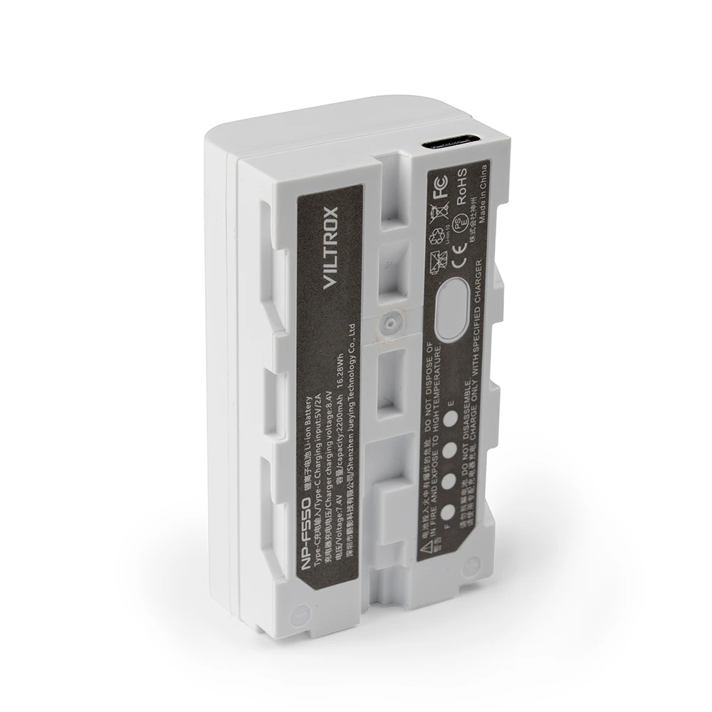 The Viltrox NP-F550 Battery 2200mah with USB C Charging Port is a high-capacity li-ion battery. The battery is suitable for various electrical devices with an NP-F-style battery.